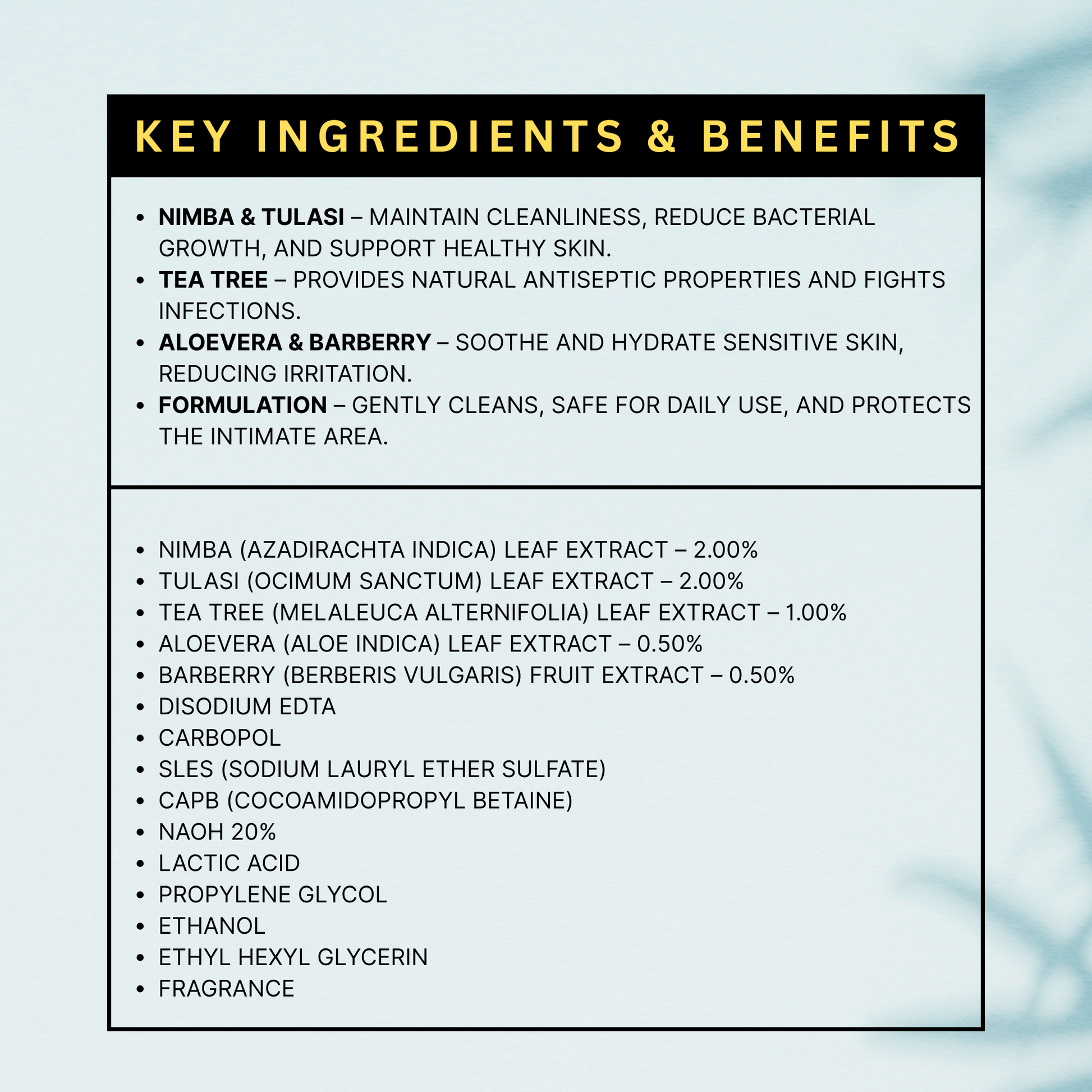 - Gentle intimate wash formulated for men to maintain freshness and balanced pH in the private area.