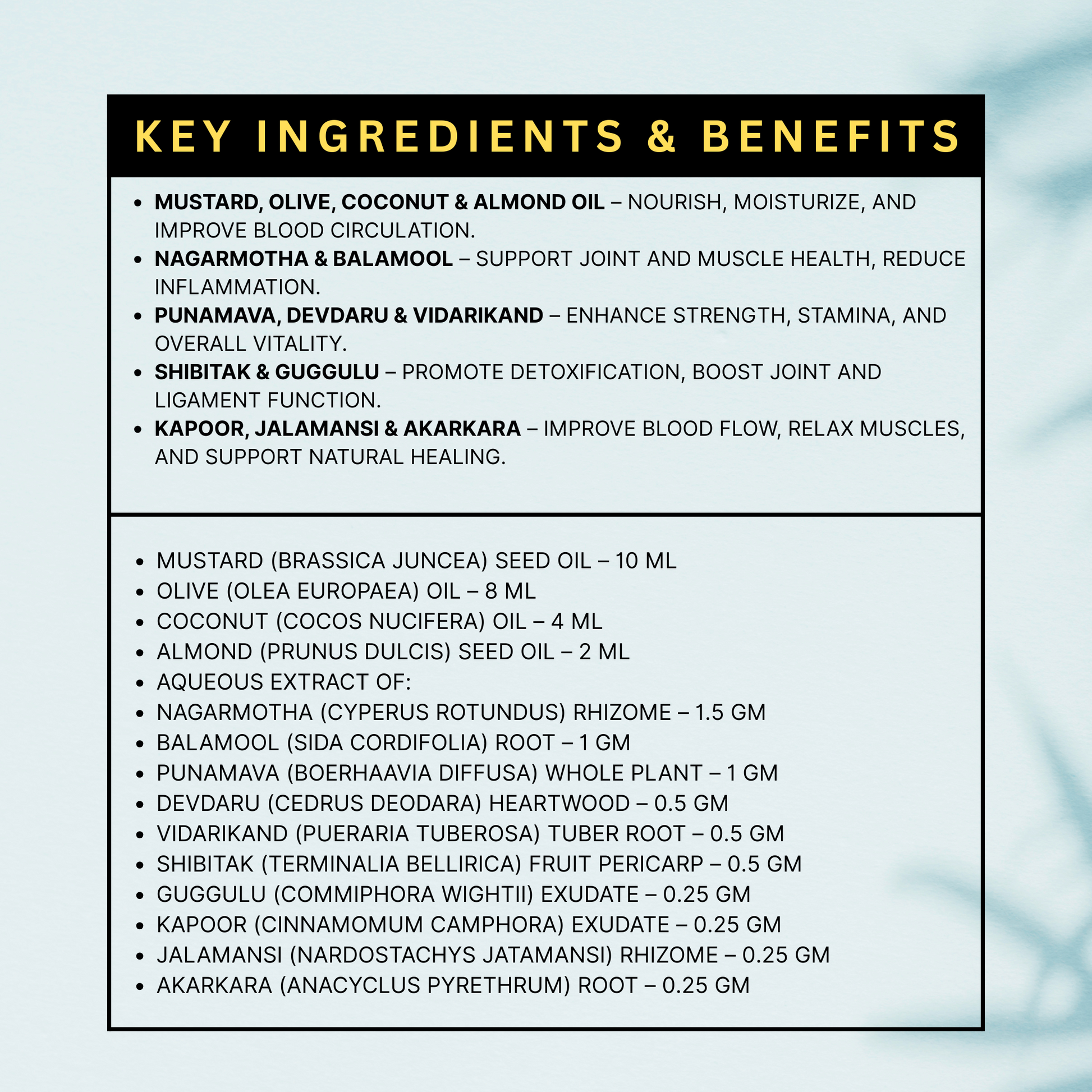 - Cosmetic/ayurvedic topical care; avoids medical or disease claims. Results depend on massage and routine.
