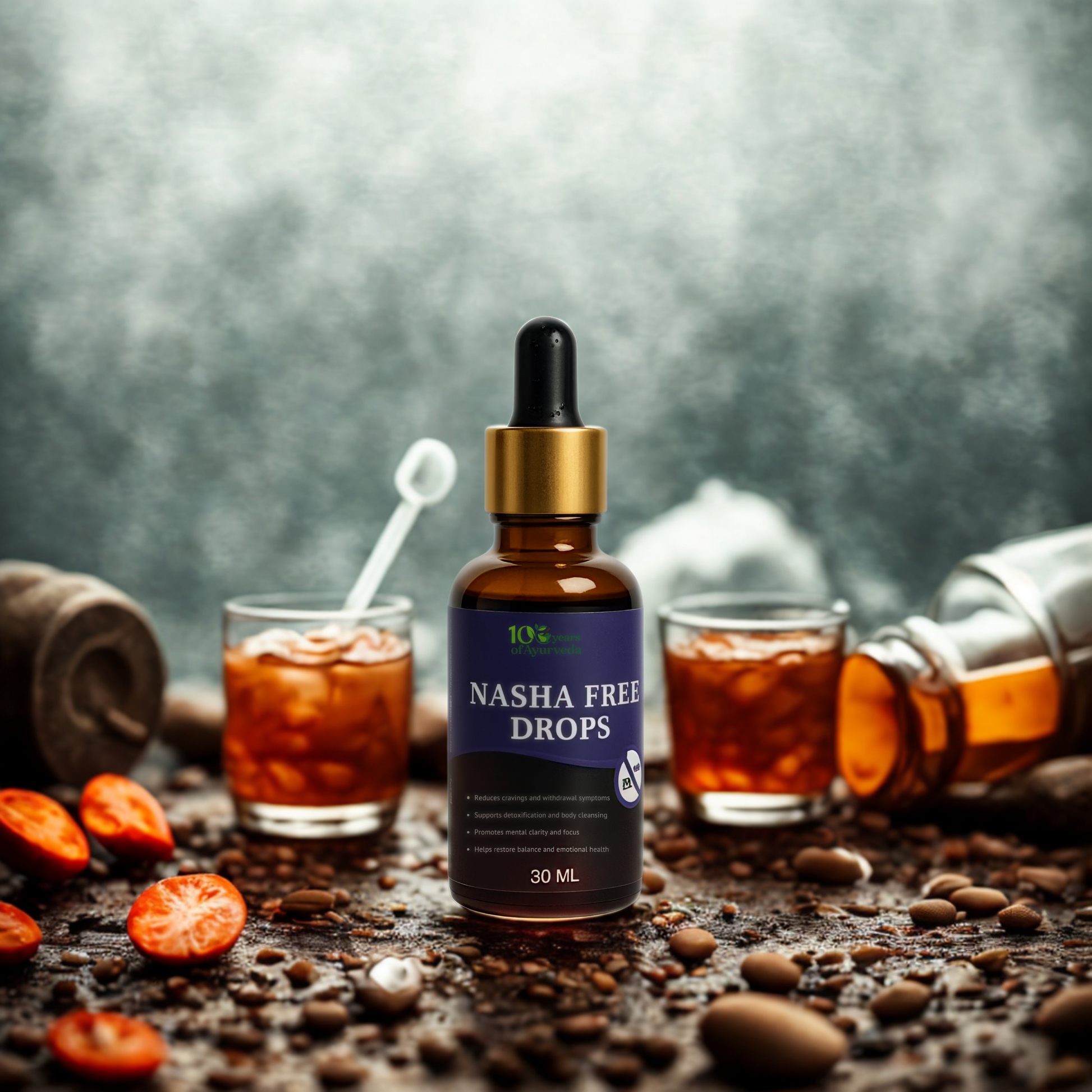 Nasha Free Drops is an ayurvedic blend created to assist individuals working to reduce or quit alcohol/tobacco by easing cravings, aiding detox processes, and supporting mental clarity. Consistent use alongside counseling, healthy nutrition, hydration, and sleep may improve adherence to recovery goals. Results vary by individual commitment and routine; this product is supportive wellness, not a medical treatment.
