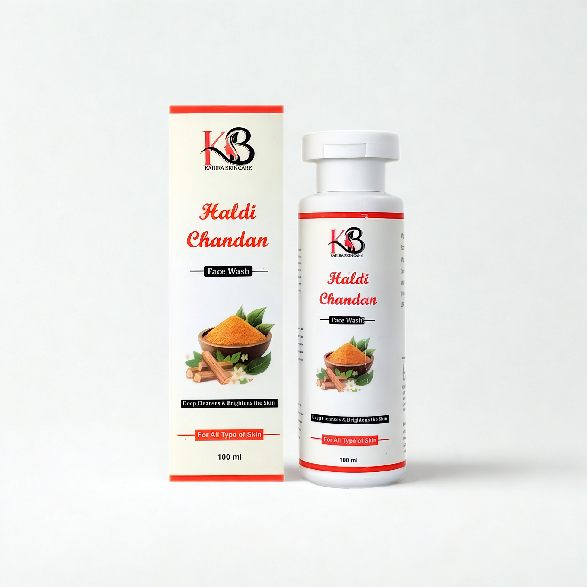 Experience the ancient beauty secrets of Ayurveda with Kabira Skincare Haldi Chandan Face Wash. Formulated with the natural goodness of Turmeric (Haldi) and Sandalwood (Chandan), this herbal cleanser deeply purifies your skin, removes excess oil, and enhances your natural glow.