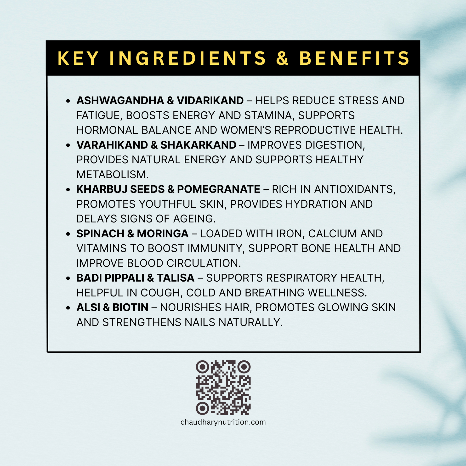 - Adult women seeking ayurvedic support for mood balance, stamina, libido, and hormonal wellness.